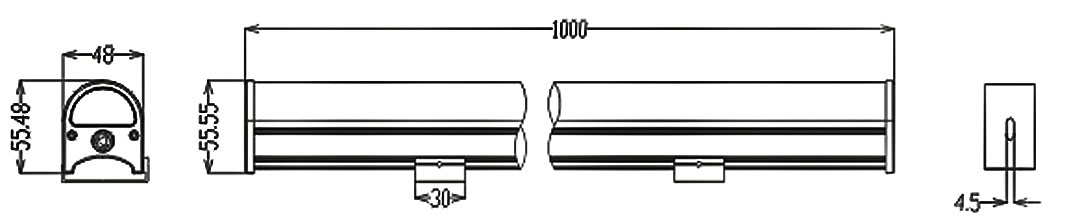 | 燈體材質(zhì):鋁型材(6063)+PC面罩+鋁支架 | 燈體尺寸:Φ50*54*1000mm(可定制長度) |