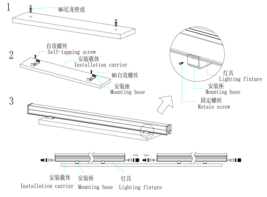 | 燈體材質(zhì):鋁型材(6063)+鋼化玻璃+PC面罩+鋁支架 | 燈體尺寸:Φ60*60*1000mm(可定制長(zhǎng)度) | ||