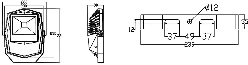| 燈體材質(zhì):壓鑄鋁+鋼化玻璃+沖壓支架 | 燈體尺寸:Φ230*290*90mm |