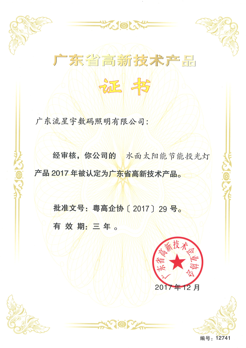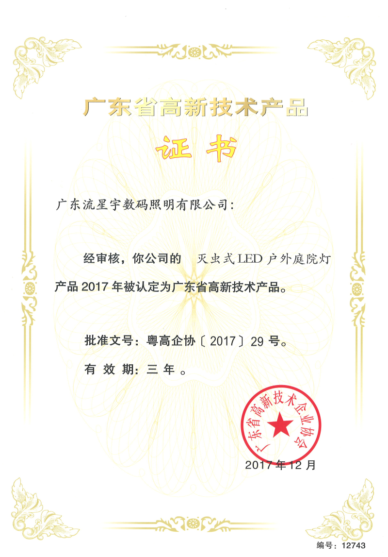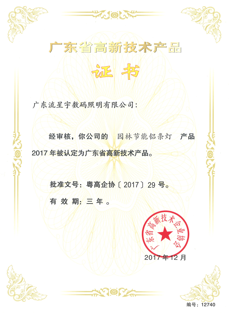 廣東流星宇數碼照明有限公司自主研發(fā)的新產品通過國家授權部門認定”榮獲““廣東省高新技術產品”,產品通過嚴格的審核流程,企業(yè)申報、專家評審、公示、申訴等流程,公司申報的產品達到業(yè)內最先進技術水平,擁有產品的核心自主知識產權、專利產品技術、產品創(chuàng)新性強、技術含量高、能形成自主品牌的新產品,彰顯了我司自主研發(fā)知識產權的強大實力。