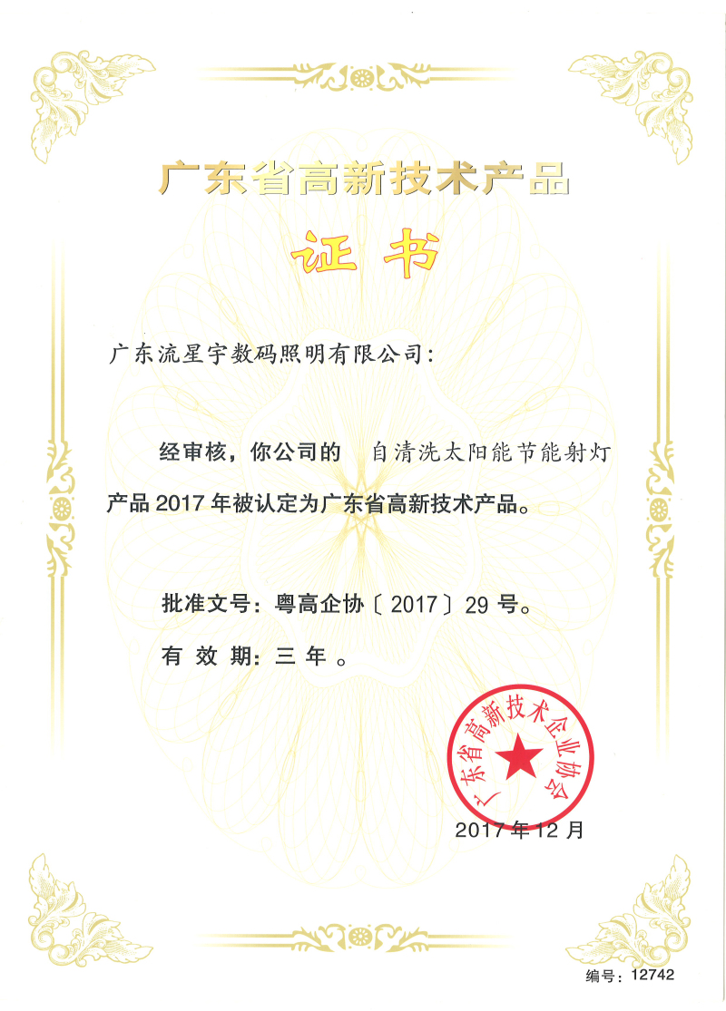 熱烈祝賀流星宇產品榮獲“廣東省高新技術產品認證”