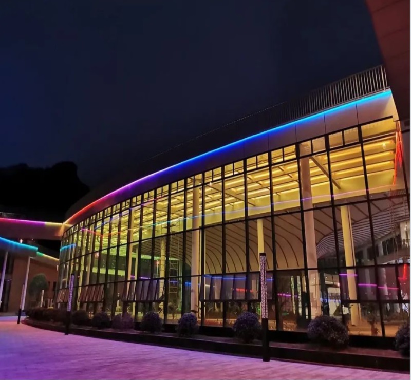 廣西柳州柳江百朋鎮(zhèn)懷洪村內(nèi),百朋荷苑4A景區(qū),最迷人的,最美的一面,就在夜幕降臨之后,游客中心周圍的璀璨燈光夜景。