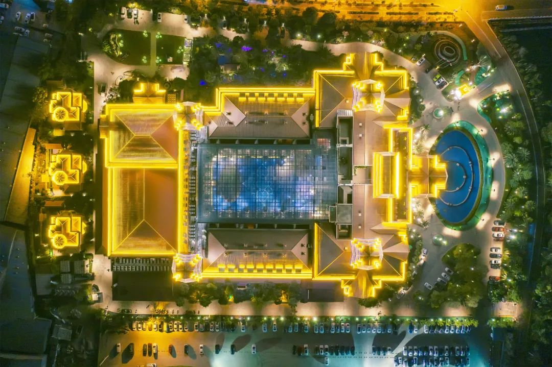 酒店照明設計從異國情調(diào)角度出發(fā)利用不同的建筑風格將其酒店品牌特色表現(xiàn)得淋漓盡致。夜景點明建筑風格,以建筑為主體,結(jié)合獨有建筑風格,利用現(xiàn)代泰式建筑定位燈光主題,突出自身亮點,用個性化的方式來勾勒整體酒店形象。