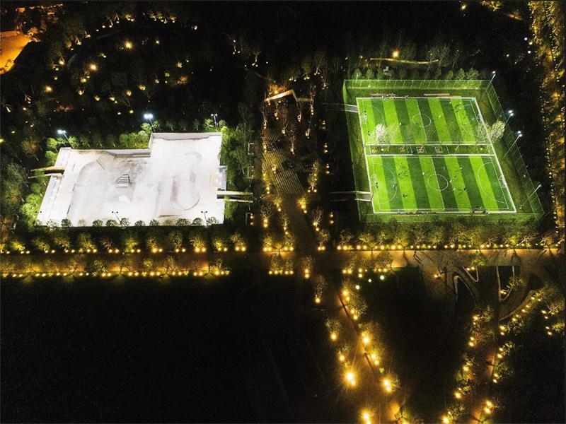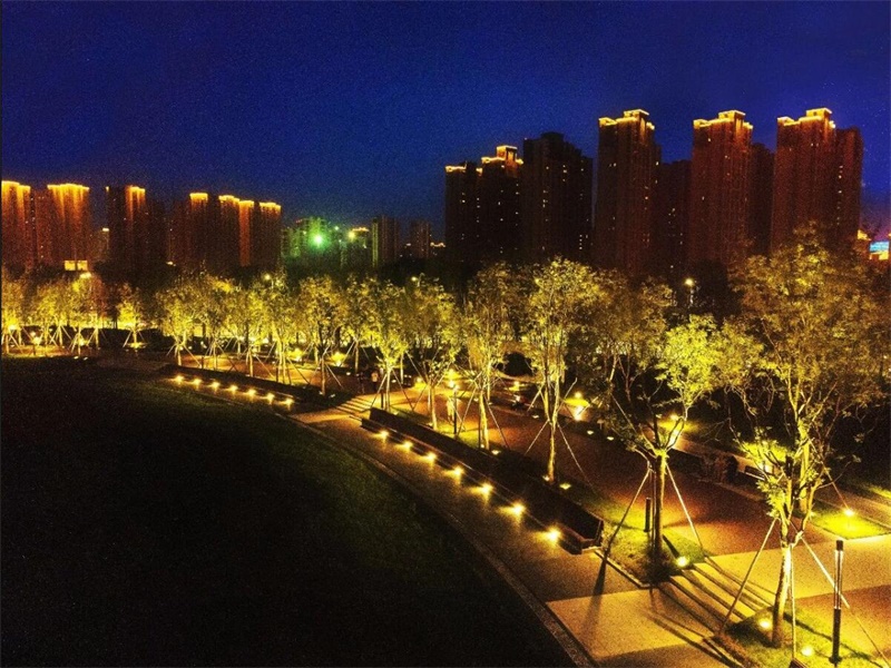 景觀照明覆蓋了園內(nèi)林木、公園棧道、運動場等