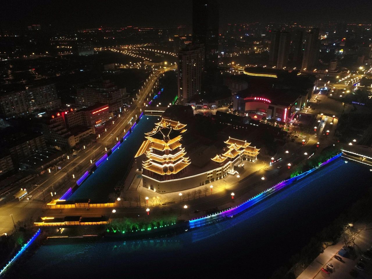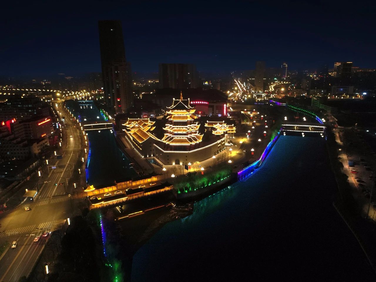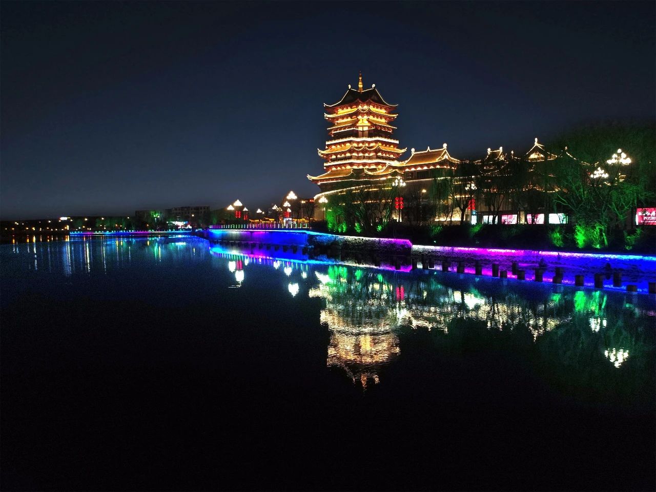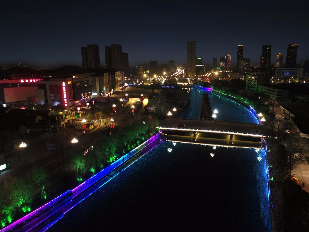 建筑宏偉雅致、考慮到歷史典故,色彩上以黃光為主,河岸兩邊采用七彩做點(diǎn)綴,整體上形成夜景照明和白天風(fēng)景相互相成。