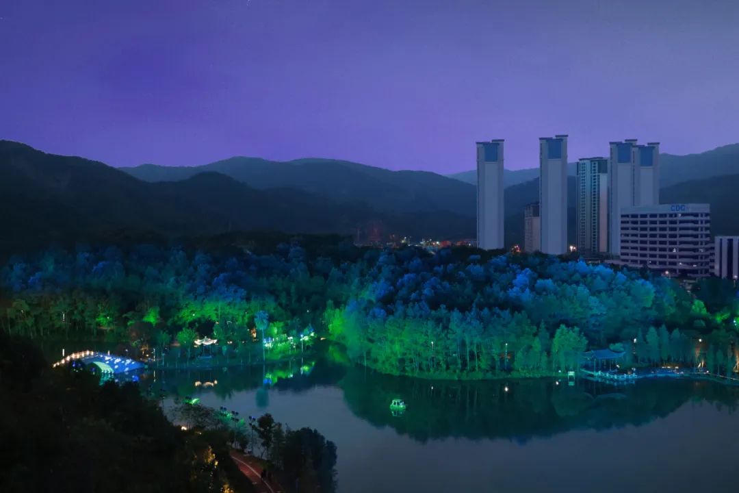 起伏的山體綠植,用燈光渲染出輪廊線,如繪畫般勾勒出山體景觀的形貌體現(xiàn)區(qū)域的整體景觀形象。打造區(qū)域亮點通過人光互動,打造廣告投放,生日策劃,新品發(fā)布會等開放活動,為景區(qū)在夜間創(chuàng)造經(jīng)濟價值,為景區(qū)賦能。