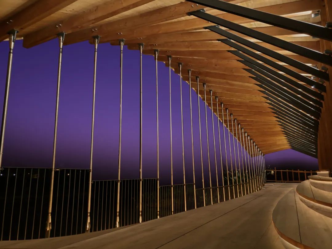 當(dāng)穿過兩端的平臺而達(dá)到廊的中央,橋上的光影被充分而全然獲知,帶給觀者一種靜謐、闊朗感覺。