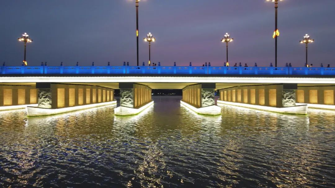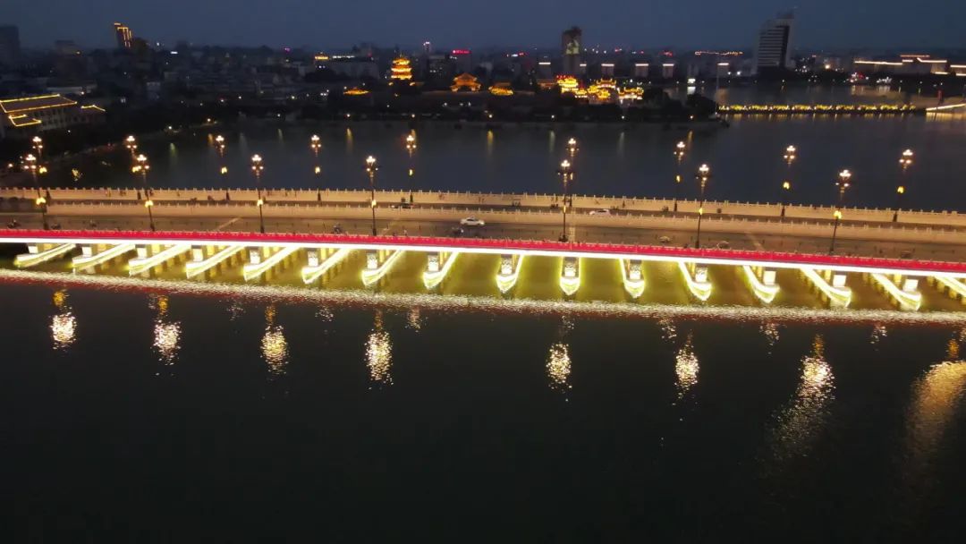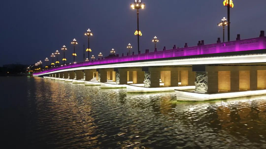 迎賓橋是開(kāi)封市水系工程上的一座重要橋梁,橫跨包公湖南北兩岸,也是開(kāi)封市的交通要道,其周邊涵蓋清明上河園、包公祠、開(kāi)封府及大相國(guó)寺等重要旅游景區(qū),迎賓橋亮燈極大地促進(jìn)開(kāi)封市旅游產(chǎn)業(yè)的發(fā)展,為開(kāi)封市的經(jīng)濟(jì)騰飛插上翅膀。