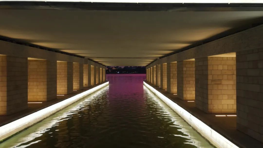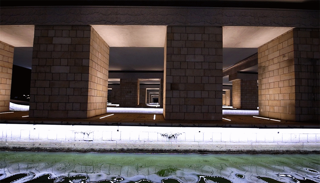 隨著夜景照明調(diào)試亮燈后-迎賓橋