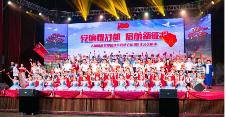 黨旗耀燈都,啟航新征程”中山市古鎮(zhèn)鎮(zhèn)慶祝中國共產(chǎn)黨成立100周年文藝展演在古鎮(zhèn)鎮(zhèn)體育館舉行。文藝展演分為序、星火燎原、南國魚桑、璀璨燈都、英姿勃發(fā)等篇章。