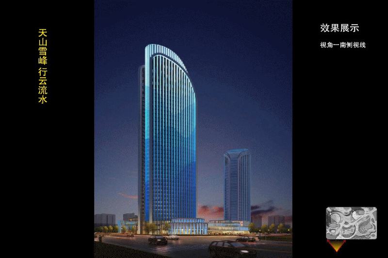 融商大廈作為烏魯木齊市超高層標(biāo)志性建筑的特性,以及高鐵新區(qū)的優(yōu)越地理位置,絕對(duì)的高度決定了其地標(biāo)、都市名片的責(zé)任,五星級(jí)酒店、高檔寫字樓等賦予設(shè)計(jì)大氣、高品質(zhì)的燈光定位。