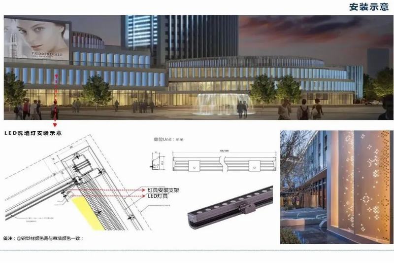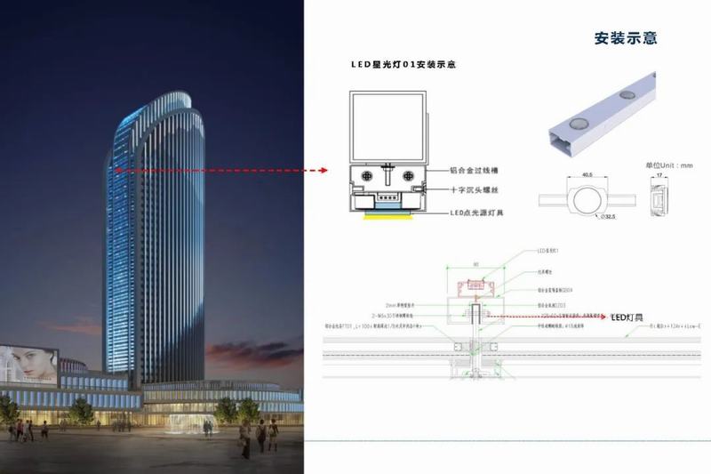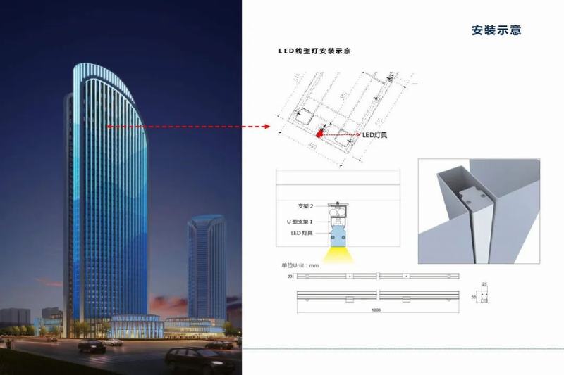 豎向俊朗的線條對(duì)應(yīng)平面圓潤(rùn)的外形,動(dòng)態(tài)的設(shè)計(jì)賦予動(dòng)態(tài)光影更具觀賞性和靈活性的展示平臺(tái)。建筑立面幕墻設(shè)計(jì)預(yù)留凹槽,采用流星宇私模燈具完美嵌入建筑,燈具隱藏式安裝。燈體選用優(yōu)質(zhì)鋁型材(6063)燈體,表面陽(yáng)極氧化處理,耐沖擊高強(qiáng)度鋼化玻璃,確保產(chǎn)品外觀持久亮麗如新。